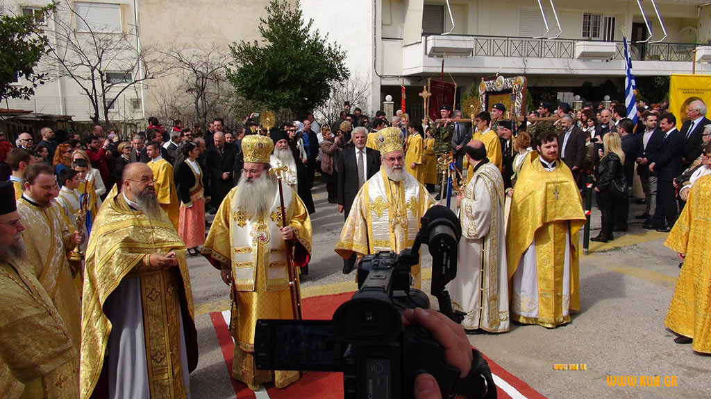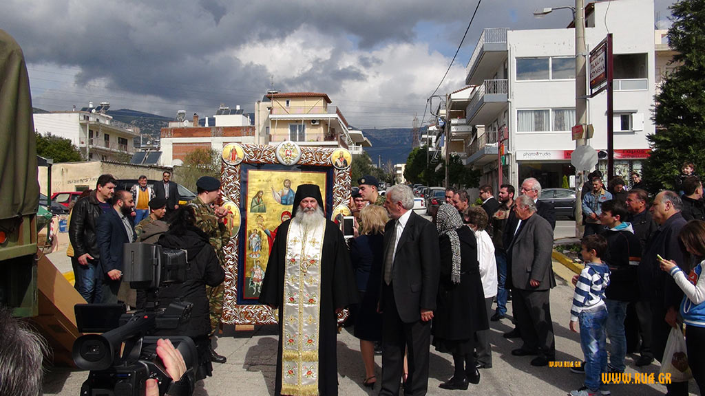 «Сегодня мы принимаем икону Божьей матери Патриотки (Патриотисы). Это икона Божьей матери, которая держит в объятиях Грецию, нашу родину». Сказал в своей речи писатель Иоаннис Корнилакис