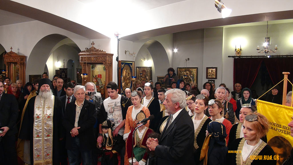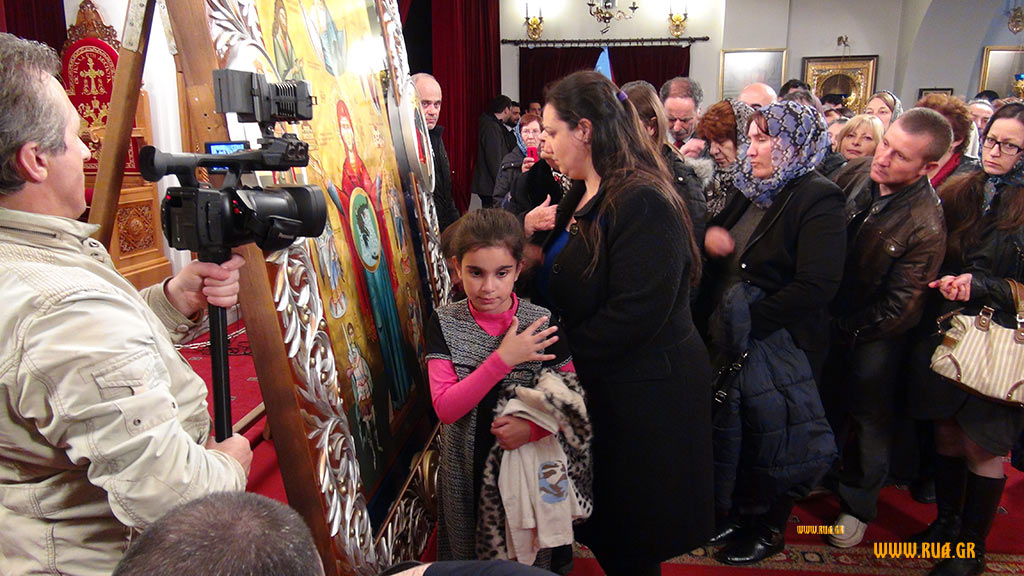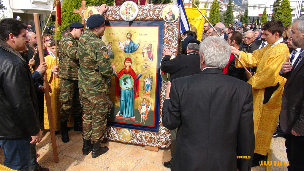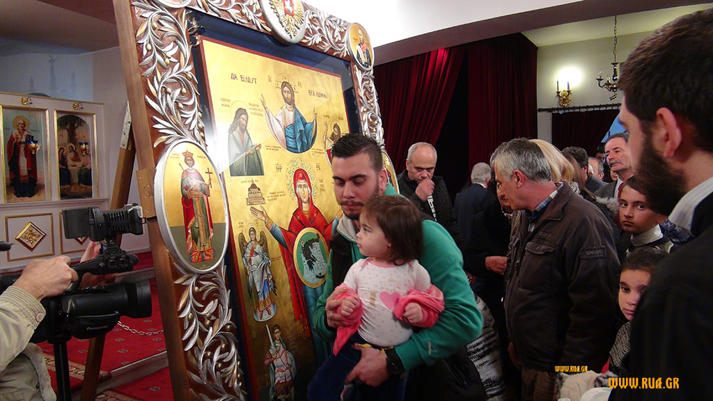 Сотни людей собрались на встречу иконы «Божья матерь Патриотка» (Патриотиса) «Единство», прошедшую 1 марта в церкви Панагия Сумела Ахарне (Мениди) где икона будет находиться несколько месяцев до момента передачи российской стороне. Икона, дар афонских монахов России и лично президенту РФ Владимиру Путину.